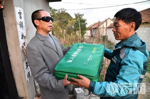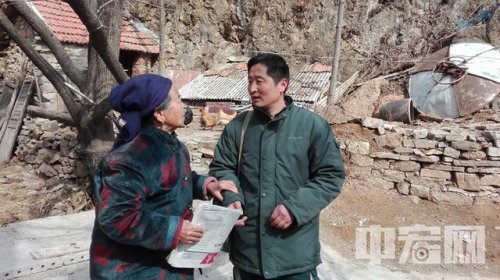 招遠(yuǎn)郵政霞?jí)]支局投遞員李翠祥為黑都坡村盲人送盲人讀物郵件
