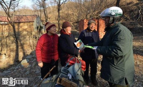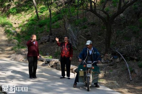 董乃軍負(fù)責(zé)200多個投遞點,他每天需要帶著近百十斤重的郵包,翻越十幾座山頭為村民投遞,38年的時間已經(jīng)丈量了一百多萬公里的山路,騎壞了十幾輛自行車,但從沒有因為天氣原因或自己的疏忽懈怠而耽誤任何郵件的投遞,實現(xiàn)了38年無差錯。圖為董乃軍從村里離開時,老人們和他揮手告別。