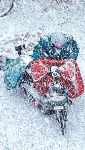 中國(guó)郵政集團(tuán)有限公司天大郵電支局郵遞員冒雪為訂戶送報(bào)紙。馮平攝(人民視覺)