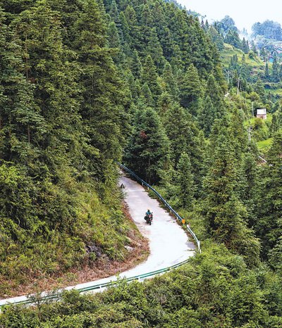 郵遞員張林昌行駛在貴州省錦屏縣河口鄉(xiāng)裕和村的公路上。楊曉海攝(影像中國(guó))