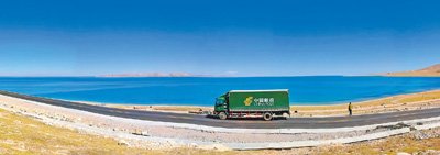 郵車從青藏高原色林錯(cuò)湖畔駛過。旦巴扎西攝(人民視覺)