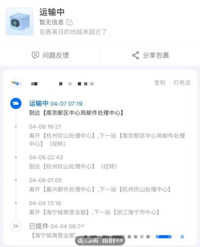 ●4月7日7時 已抵達(dá)南京郵件處理中心