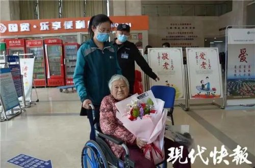 " 奶奶,我來接您了。"4 月 6 日上午 9 點,林曉芳將一大束鮮花送到老人手中,祝愿她早日康復。接著,他讓同行的丈夫在一旁照看老人,自己則在急診和住院部往返數(shù)次,幫老人辦理出院手續(xù)、拿藥、租輪椅。將老人扶上車,已是下午 1 點半,此時林曉芳才感覺自己又渴又餓,水都沒顧上喝一口。