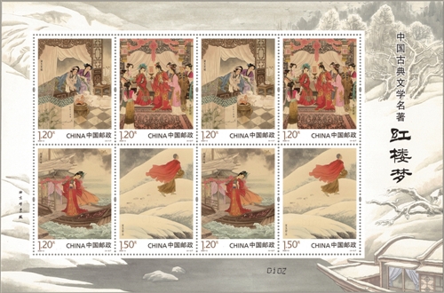 4月23日,中國(guó)郵政發(fā)行《中國(guó)古典文學(xué)名著——〈紅樓夢(mèng)〉(五)》特種郵票一套4枚、小型張1枚。郵票圖案名稱分別為:黛玉焚稿、金玉聯(lián)姻、探春遠(yuǎn)嫁、寶玉卻塵,小型張圖案名稱為:寒塘鶴影。全套郵票面值11.10元。