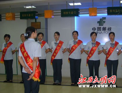 每天清晨、當(dāng)您迎著朝霞、走過吉安市郵政局鷺洲營業(yè)廳門口的時(shí)候,可以看到十幾名營業(yè)員排著整齊的隊(duì)伍,莊嚴(yán)宣誓。這,只是吉安市郵政局“建精品窗口、創(chuàng)優(yōu)質(zhì)服務(wù)”的一個(gè)小縮影。