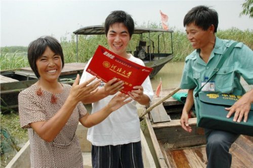 淮安日?qǐng)?bào)記者唐筱葳印象最深的是,唐真亞投遞準(zhǔn)確率達(dá)100%。2008年大年初一凌晨,在清冷的湖面上,新灘村漁民劉士學(xué)從唐真亞手上接過(guò)已經(jīng)三年杳無(wú)音訊的兒子的來(lái)信。采訪中,那難以言說(shuō)的激動(dòng)和感人的一個(gè)個(gè)瞬間,唐筱葳至今記憶猶新。