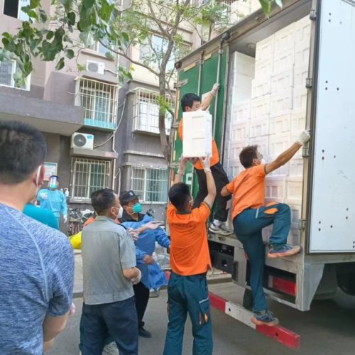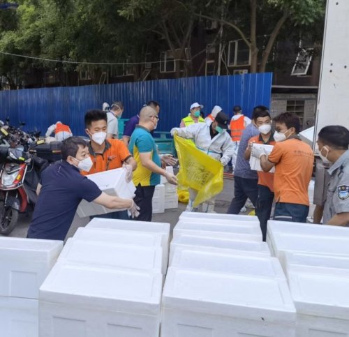 5月29日,3900份蔬菜套餐和6400斤延慶愛心圓生菜分4車順利送達(dá)封控區(qū)南庭新苑北區(qū)內(nèi)。