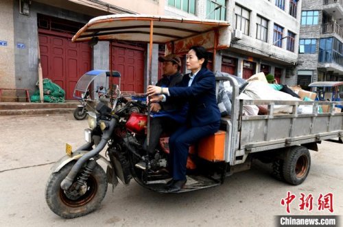 圖為蔣玉美乘坐小三輪回郵政所?!⊥鯑|明 攝