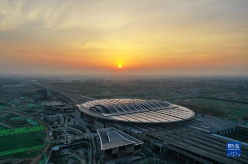 這是京雄城際鐵路雄安站(2021年7月1日攝,無人機照片)。 新華社記者 牟宇 攝