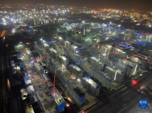 這是雄安新區(qū)容東片區(qū)華望城項目夜景(1月4日攝,無人機照片)。 新華社記者 駱學峰 攝