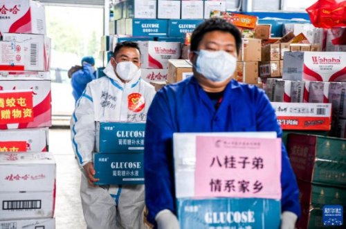 2月15日,在廣西百色市德??h一處倉庫,工作人員在搬運(yùn)抗疫物資。新華社記者 曹祎銘 攝