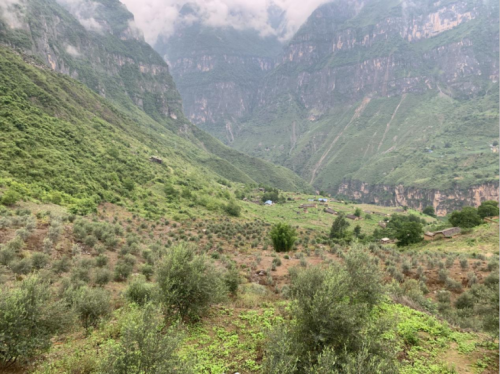 云霧縈繞的山頂上,大片油橄欖林和少許莊稼、蔬菜長勢(shì)正好,其間錯(cuò)落有致地分布著一間間彝族老百姓村舍,竹墻青瓦,簡樸寧靜。在最高處,一面鮮艷的黨旗迎風(fēng)飄揚(yáng),旁邊有一家簡易民宿,可供當(dāng)天實(shí)在不能下山的游客小住。遠(yuǎn)遠(yuǎn)看去,有村民已在院外翹首以盼,等待某色爾者到來。