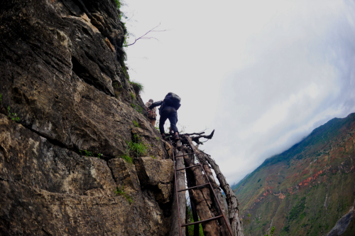 天空飄著細(xì)雨,讓本就艱難的攀爬變得更加艱險(xiǎn)起來。