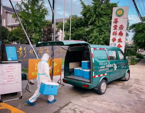 彭州郵政轉(zhuǎn)運核酸樣本。(成都郵政分公司供圖)
