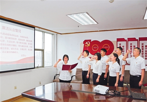 “我以對(duì)黨和人民高度負(fù)責(zé)的態(tài)度,向組織承諾……”近日,江西省郵政分公司各級(jí)黨組織紛紛結(jié)合崗位職責(zé),對(duì)新入職黨員干部職工開展廉潔從業(yè)專題教育,組織廉潔從業(yè)宣誓,為黨員干部扣好廉潔從業(yè)的“第一粒扣子”。