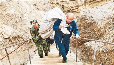 上橋,有兩條路線:一是開車走盤山“搓板路”,路遠難行還危險;二是徒步爬一條直通橋上的水泥臺階,150級,坡度近70度,被執(zhí)勤部隊官兵形容為“天梯”。高海拔下,二十來歲的年輕戰(zhàn)士,走“天梯”都會頭暈目眩,而1976年生人的葛軍,為節(jié)省時間,每次都選擇扛著郵包往上爬。