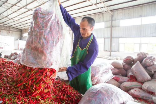 公司的產(chǎn)品主要以辣椒調(diào)味品為主,如干辣椒、紅油辣椒、火鍋底料。譚建蘭介紹說(shuō),通過(guò)“公司+基地+合作社+農(nóng)戶”的模式,三紅辣椒合作社共有1.1萬(wàn)畝種植基地,帶動(dòng)了6400戶社員增收致富?!拔覀兦捌谠诨赜绫WC品種品質(zhì),中期安排科技特派員進(jìn)行技術(shù)指導(dǎo),后期兜底收購(gòu),讓村民生產(chǎn)無(wú)憂、銷售不愁。”