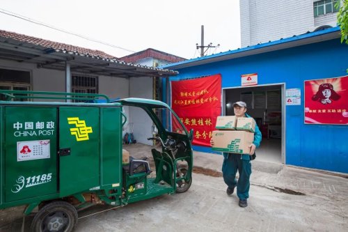 投遞完農(nóng)莊村民網(wǎng)購(gòu)的包裹