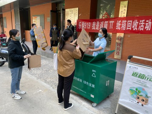 在湖南省,湖南郵政多措并舉,開展綠色郵政進機關(guān)、進校園、進社區(qū),協(xié)同推進回收復(fù)用。芷江郵政與縣農(nóng)村農(nóng)業(yè)局開展“瓦楞紙箱回收我們在行動”暨金融防詐騙宣傳活動,將回收復(fù)用行動與金融宣傳相結(jié)合;邵陽郵政走進當(dāng)?shù)匦@,舉辦主題活動,設(shè)置有獎問答等游戲形式,向同學(xué)們普及了綠色郵政知識,傳播綠色環(huán)保的理念;湘潭郵政聯(lián)合社會有關(guān)機構(gòu),通過發(fā)放綠色郵政宣傳單及環(huán)保知識講座,對社會公眾進行返箱行動及綠色環(huán)保宣傳;常德郵政走進老鶴樹社區(qū)中心,邀請社區(qū)工作人員共同參與宣傳回收復(fù)瓦楞紙箱專項活動,社區(qū)中心高度贊賞這一活動,社區(qū)書記主動邀約居民參加。