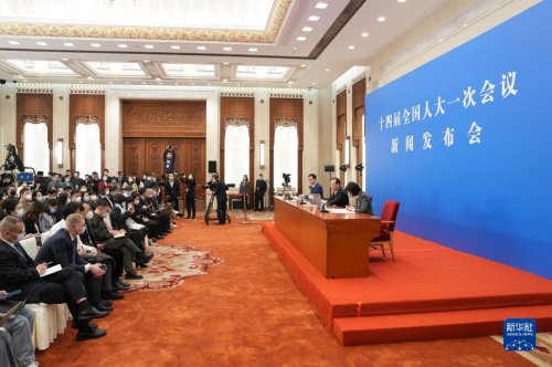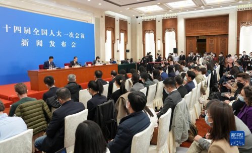 3月4日,十四屆全國(guó)人大一次會(huì)議在北京人民大會(huì)堂舉行新聞發(fā)布會(huì)。大會(huì)發(fā)言人王超就會(huì)議議程和人大有關(guān)工作回答中外記者提問(wèn)。新華社記者 邢廣利 攝