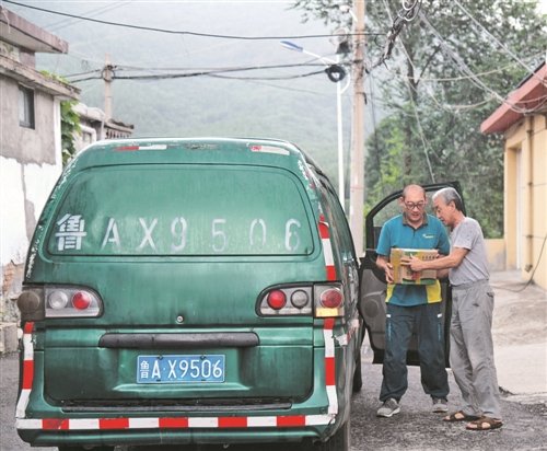 帶著這些郵件,許桂明駕駛郵車冒著大雨在蜿蜒的山路上行進(jìn)。“上午還是烈日當(dāng)頭,汗流浹背,下午就是瓢潑大雨,全身淋透,這在山區(qū)很正常?!痹S桂明說(shuō)。停好車,撐起傘,許桂明把郵件緊緊抱在懷里,沿著小路跑進(jìn)村里。10年來(lái),他始終牢記“人民郵政為人民”的服務(wù)宗旨,走遍了這15個(gè)行政村的家家戶戶,與村民們相熟相知,遇到不方便外出購(gòu)物的老人以及需要幫助的村民,他都主動(dòng)幫助捎送生活物資。