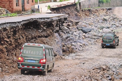 目前,受災(zāi)地區(qū)只有持救災(zāi)通行證的車輛才可以通行。進(jìn)入受災(zāi)地區(qū)后,可以看到路面清障工作基本完成,小型車輛可以通過,但受災(zāi)情況嚴(yán)重,泥石流、塌方隨處可見,部分房屋受損;臨水道路多數(shù)受損,有時甚至要在河床上臨時夯出的土路上行駛;在危險路段,由領(lǐng)航車在前方探路排障,確認(rèn)安全后,再指揮郵車通行。受災(zāi)地區(qū)一些交通標(biāo)識被沖毀,通信訊號也未完全恢復(fù),加之部分道路受阻必須繞行,司機(jī)只能依靠經(jīng)驗和離線地圖辨別方位,每一步都是未知。