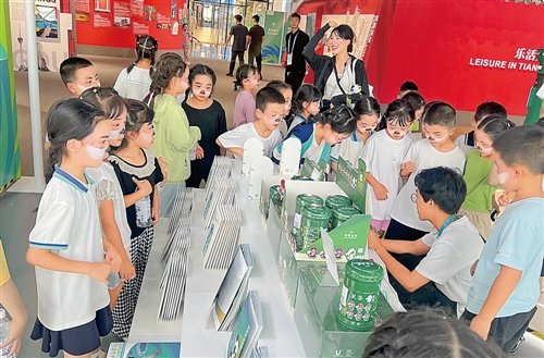小朋友們對(duì)大運(yùn)村郵政服務(wù)點(diǎn)位里的各式大運(yùn)會(huì)郵品非常感興趣。