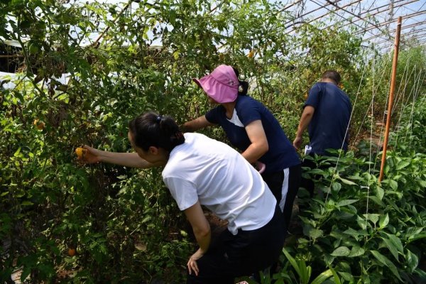 8點(diǎn)30分,記者與2號(hào)小園地園主陳娜相約,一起采摘蔬菜。從沒(méi)下過(guò)菜地的“小白”們,手忙腳亂也沒(méi)有陳大姐一個(gè)人摘得快。不過(guò),在大家的共同努力下,訂單蔬菜很快就采摘完畢。帶著勝利的果實(shí),記者和陳大姐一起趕往村里的郵政綜合便民服務(wù)站。