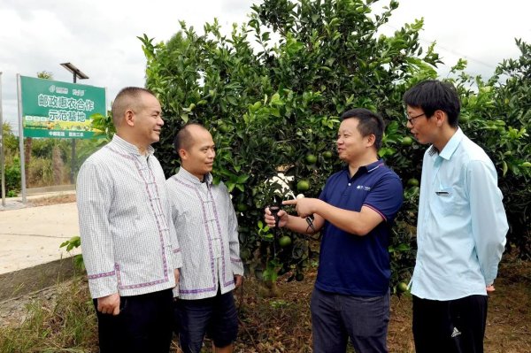 在蔻橙種植基地,郵政邀請(qǐng)中化測(cè)土配方專家走到橙園里,為合作社社員提供農(nóng)資農(nóng)技服務(wù)。專家鉆進(jìn)果園,現(xiàn)場(chǎng)教學(xué)。在合作社郵政示范園,專家周喜武將PH值測(cè)試儀插入土壤,數(shù)值顯示為6.8,“現(xiàn)在土壤PH值為6.8,屬于酸性土壤,利于蔻橙的生長(zhǎng)”。