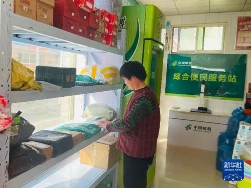 高墩營村綜合便民服務站內(nèi),負責人正在整理包裹。新華社記者李杰 攝