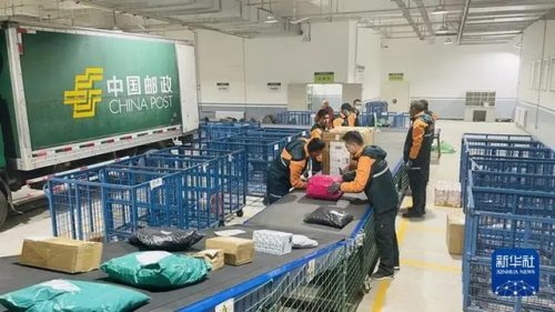 4時許,記者驅(qū)車前往蘭州新區(qū)西部藥谷的中國郵政集團有限公司甘肅省分公司郵件處理中心。抵達時,門口停滿車輛,有的在卸貨,有的在裝車。初冬寒意甚濃,但門內(nèi)十分火熱,傳送帶吱吱作響,包裹加速傳遞。