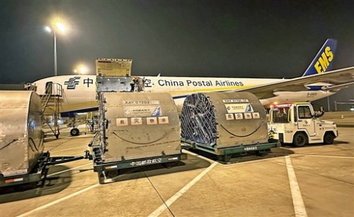 12月25日6點37分,首架滿載22噸抗震救災(zāi)物資的中國郵政航空飛機(CF9002航班)從南京祿口國際機場起飛,9點02分飛抵蘭州中川國際機場,標志著中國郵政“南京—蘭州”抗震救災(zāi)航空運輸專線從即日起正式開通。隨后,裝載著18噸抗震救災(zāi)物資的第二架郵航飛機(CF9112航班)于11點18分飛抵蘭州。兩個航班運送的總重40余噸救災(zāi)物資包括帳篷、衣物、被褥、雨鞋、方便食品等,緊急馳援甘肅省臨夏州積石山縣抗震救災(zāi)工作。