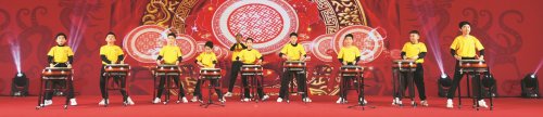 來自宋慶齡基金會的孩子們?yōu)槭装l(fā)式擂鼓助威。