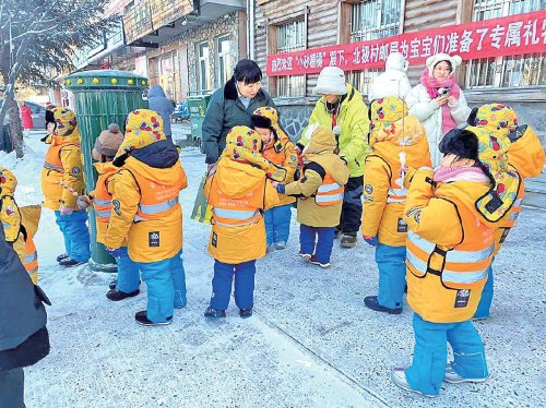1月5日,11個(gè)“小砂糖橘”來(lái)到位于漠河市的“最北郵局”——北極村郵政支局,受到郵局工作人員的“花式寵愛”。當(dāng)天一大早,支局工作人員就拉起了橫幅:熱烈歡迎“小砂糖橘殿下”。北極村支局為寶寶們準(zhǔn)備了專屬禮物,營(yíng)造出滿滿的儀式感。上午10點(diǎn),在3位老師的帶領(lǐng)下,11位萌娃蹦蹦跳跳走進(jìn)“最北郵局”。支局長(zhǎng)穆曉艷帶領(lǐng)老師和萌娃們參觀了郵局,給大家介紹了“最北郵局”的特色文化和文創(chuàng)產(chǎn)品。穆曉艷還給萌娃們發(fā)放了具有“最北特色”的明信片、郵資封和冰箱貼等紀(jì)念品,給他們留下打卡漠河的美好紀(jì)念。由于一眾萌娃均為學(xué)齡前兒童,“最北郵局”的工作人員還貼心地給“小砂糖橘”們整理衣服、擦鼻涕,全程保駕護(hù)航。穆曉艷說(shuō):“小朋友們非??蓯?,也特別歡迎他們來(lái)到‘最北郵局’打卡,體驗(yàn)郵政服務(wù)。希望在他們幼小的心里,種下一顆來(lái)自‘最北郵局’的種子,等他們長(zhǎng)大后,能夠再次來(lái)到祖國(guó)的最北端,來(lái)到‘最北郵局’?!?/p>