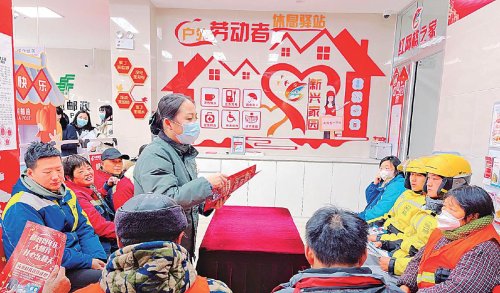 此次活動中,支局第四黨支部邀請快遞員、外賣員、環(huán)衛(wèi)工人等戶外工作者齊聚興仁支局,依托支局“紅網格之家”“普法驛站”“戶外勞動者休息驛站”等多重角色,向大家講解法律知識,引導新業(yè)態(tài)從業(yè)者強化守法觀念和法治意識,通過法律途徑維護自己的合法權益。
