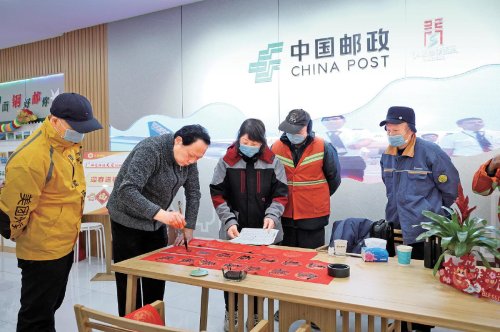 1月17日,湖北省武漢市青山區(qū)郵政分公司青山綠水紅鋼城網(wǎng)點(diǎn)“郵愛驛站”開展了“戶外工作者溫暖行動(dòng)”,為20余名環(huán)衛(wèi)工人、快遞員送上臘八粥,并開展了健康問診、“納福迎新送春聯(lián)”等活動(dòng),為戶外工作者傳遞情誼、送上祝福。央視《新聞直播間》節(jié)目對(duì)此次活動(dòng)進(jìn)行了報(bào)道。