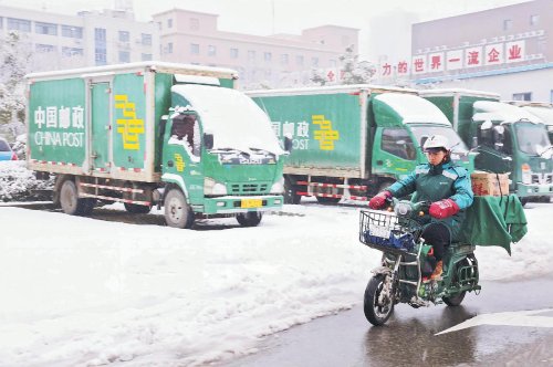 湖北省武漢市郵政分公司在做好人員、車輛安全防范的情況下,攬投部全部正常對(duì)外服務(wù);投遞員迎雪而上,提前到崗,做好車輛檢查、郵件分揀等班前準(zhǔn)備工作。同時(shí),合理規(guī)劃投遞路線,抓緊時(shí)間出班,及時(shí)將郵件安全、高效送到市民手中。