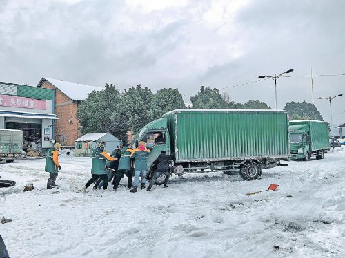 2月3日,湖南省張家界市突降大雪,張家界市郵政分公司第一時(shí)間啟動(dòng)冰雪天氣應(yīng)急方案,督促為駕駛車輛安裝防滑鏈,采取防護(hù)措施,做好及時(shí)接卸和投遞郵件的工作,全力保障郵運(yùn)駕駛安全和郵路暢通。□王伍軍 卓蕾 攝影報(bào)道