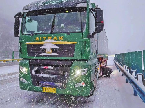 陜西省西安郵區(qū)中心駕駛?cè)藛T給郵車加裝防滑鏈,帶上方便面、牛奶等應(yīng)急食品及保暖被袋,冒著大雪和低溫出班,將郵件安全送達(dá)目的地?!跬鮾x 徐策 攝影報(bào)道