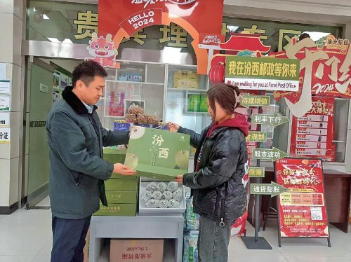 汾西郵政用玉露香梨作為禮品回饋金融客戶?! 踅颉z