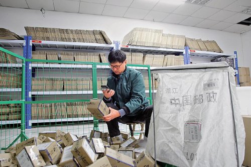 攬投員上門攬收珍珠郵件。