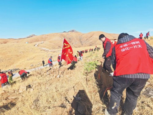 3月8日,河南省新鄉(xiāng)市郵政分公司組織20余名青年員工到衛(wèi)輝市獅豹頭鄉(xiāng)開(kāi)展“手植一棵樹(shù),綠化一片天”植樹(shù)活動(dòng)。經(jīng)過(guò)兩個(gè)多小時(shí)的勞動(dòng),青年員工共栽植側(cè)柏苗百余株,為初春的山地增添了一抹新綠。