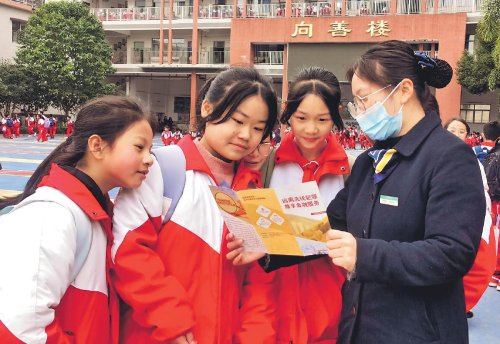 日前,郵儲銀行廣東省韶關(guān)市分行以“金融消保在身邊、保障權(quán)益防風(fēng)險”為主題,開展2024年“3·15”宣傳活動。圖為韶關(guān)市分行翁源縣支行工作人員開展“金融知識進校園”宣傳。