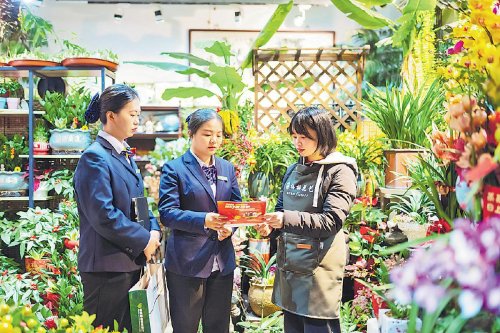 郵儲銀行福建省莆田市分行工作人員向鮮花商戶推介金融產品,根據商戶的生產經營情況,為他們制定個性化融資服務方案?!觞S益強 攝