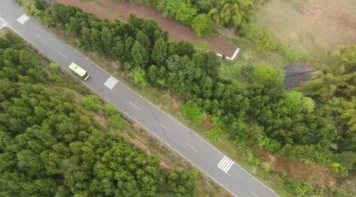 公交車(chē)行駛在鄉(xiāng)鎮(zhèn)道路上。(攝影:何佳林)
