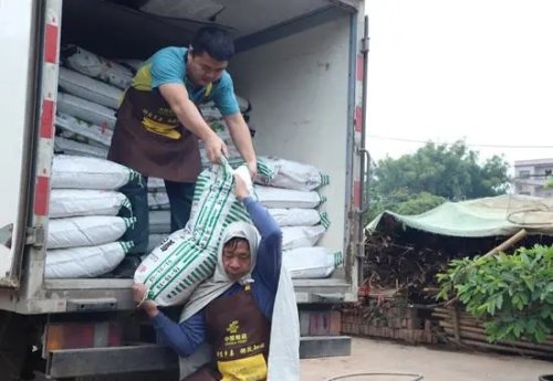 圖為貴港市郵政分公司工作人員搬運(yùn)肥料。覃東新攝