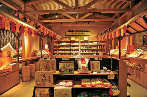 “富春山居”農(nóng)產(chǎn)品館內(nèi)地方土特產(chǎn)琳瑯滿目?!跬醢材取z