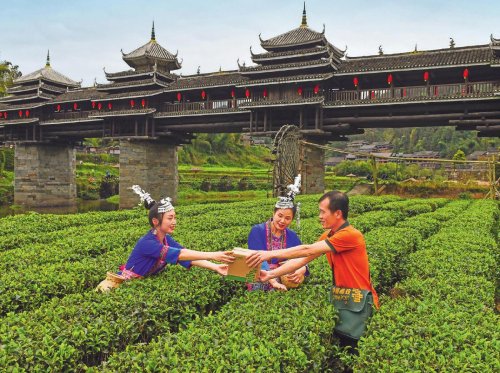 三江侗族自治縣郵政分公司投遞員走進田間,將郵件送到程陽八寨農(nóng)戶手中?!踉槲摹z
