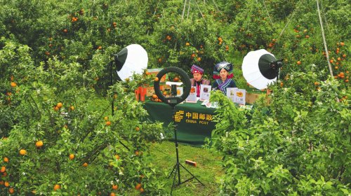 南寧郵政主播在武鳴沃柑基地直播帶貨?!踔袊]政報記者 賈紅偉 攝