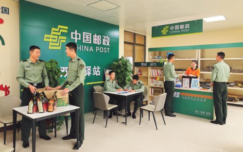 崇左市郵政分公司員工在憑祥軍郵驛站服務(wù)部隊官兵?!跆撇āz